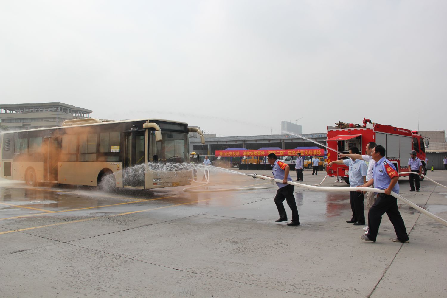 為深刻貫徹第十八個(gè)全國安全生產(chǎn)月“防風(fēng)險(xiǎn)、除隱患、遏事故”活動(dòng)主題,進(jìn)一步加強(qiáng)公司消防、反恐管理工作及公安機(jī)關(guān)“135”快速反應(yīng)圈處置配合能力,6月27日,蕭山公交在通惠路公交站舉行反恐、消防突發(fā)事件“四聯(lián)三防”應(yīng)急處置演練,區(qū)反恐大隊(duì)、區(qū)交通治安派出所領(lǐng)導(dǎo)及公司班子成員、各部門負(fù)責(zé)人、各巡防隊(duì)伍、義務(wù)消防隊(duì)伍等200余人觀摩了此次演練。