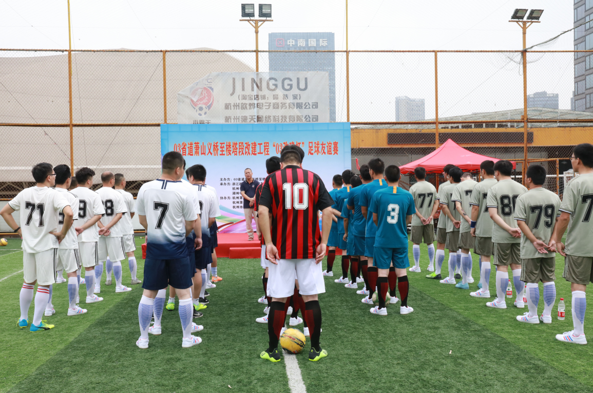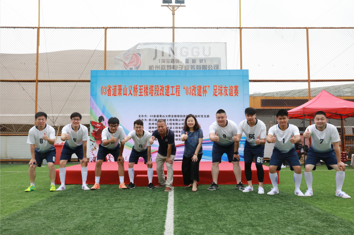 7月5日,03省道蕭山義橋至樓塔段改建工程臨時黨支部舉辦“03改建杯”足球友誼賽。應邀參賽單位有蕭山交通建管公司、杭州市交通規劃設計研究院,以及03改建監理辦,TJ2標、TJ3標、TJ4標項目部成員。
