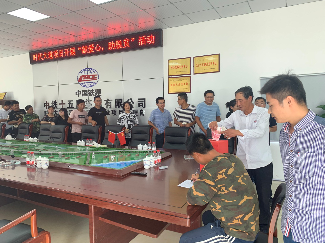 近日,時代大道改建工程臨時黨支部積極響應蕭山交通建管公司黨支部的號召,組織全體職工開展“獻愛心 助脫貧”捐款活動,向中國鐵建定點扶貧河北省張家口市萬全區、河北省張家口市尚義縣、青海省果洛州甘德縣進行愛心捐款。