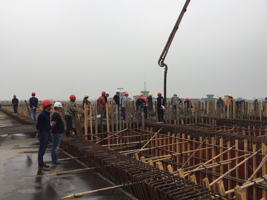 截止下午16點整時現(xiàn)澆筑過程順利,已累計澆筑575方。剩余1625方。