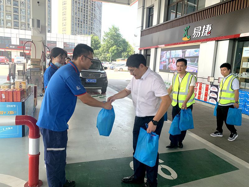8月11日上午,集團黨委副書記、總經理徐寧軍,黨群部副經理高祎欽一行蒞臨交投能源公司蜀山加油站看望慰問高溫一線員工,公司總經理張朝杰、副總經理丁軼娜陪同。