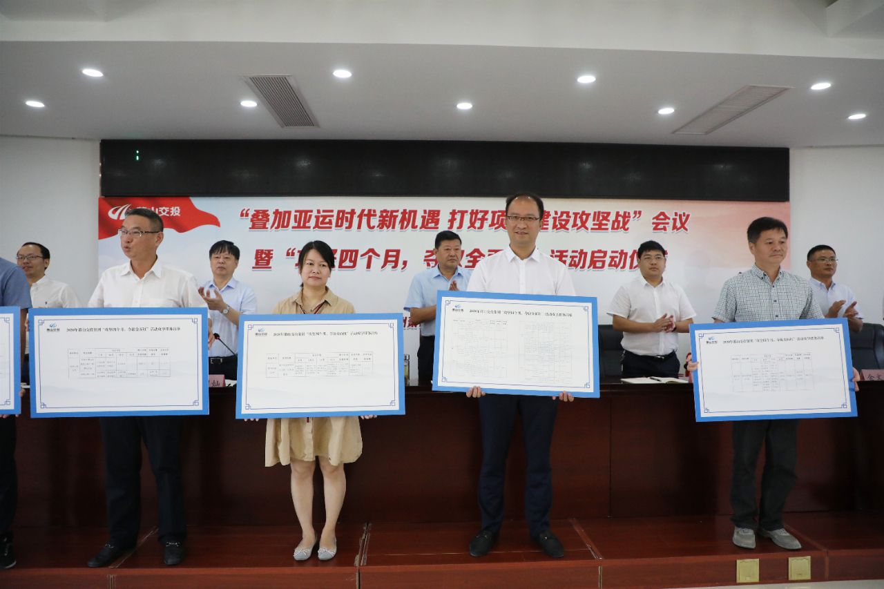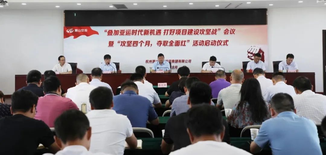 為進一步貫徹落實《蕭山區“亞運興城”行動實施意見》,響應“亞運興城城建行動”會議精神,堅持以亞運為總牽引,聚焦集團各項政府投資重點項目建設,鎖定目標、明確要求、落實責任,凝聚各單位建設合力,奮力奪取項目建設全年紅,展現集團助力“亞運興城”的擔當與風采,8月21日上午,集團召開“疊加亞運時代新機遇打好項目建設攻堅戰”會議暨“攻堅四個月,奪取全面紅”活動啟動儀式。集團班子領導,集團各部室負責人,相關建設單位全體班子成員,部分下屬單位黨政主要負責人及重點工程項目現場負責人參加。