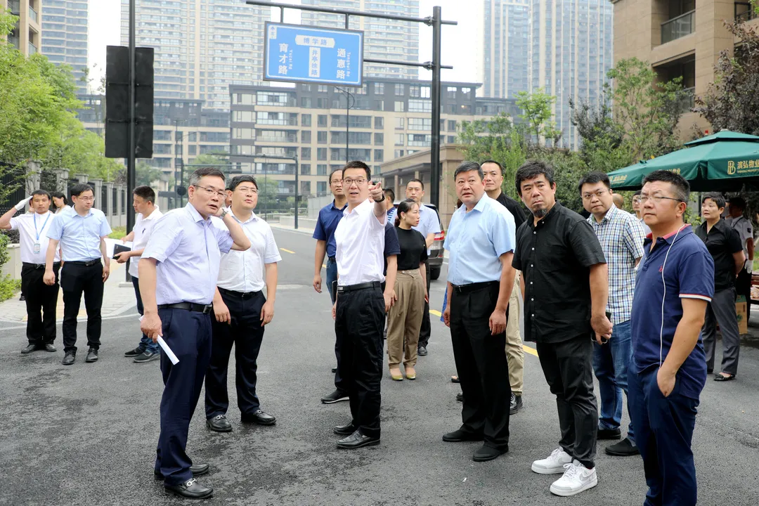 6月9日下午,區委副書記、區長章登峰赴北干街道塘灣村督查集團安置房建設情況。區府辦、區住建局、區城管局、北干街道主要負責人,集團黨委書記、董事長祝關翔,黨委副書記、總經理徐寧軍參加。