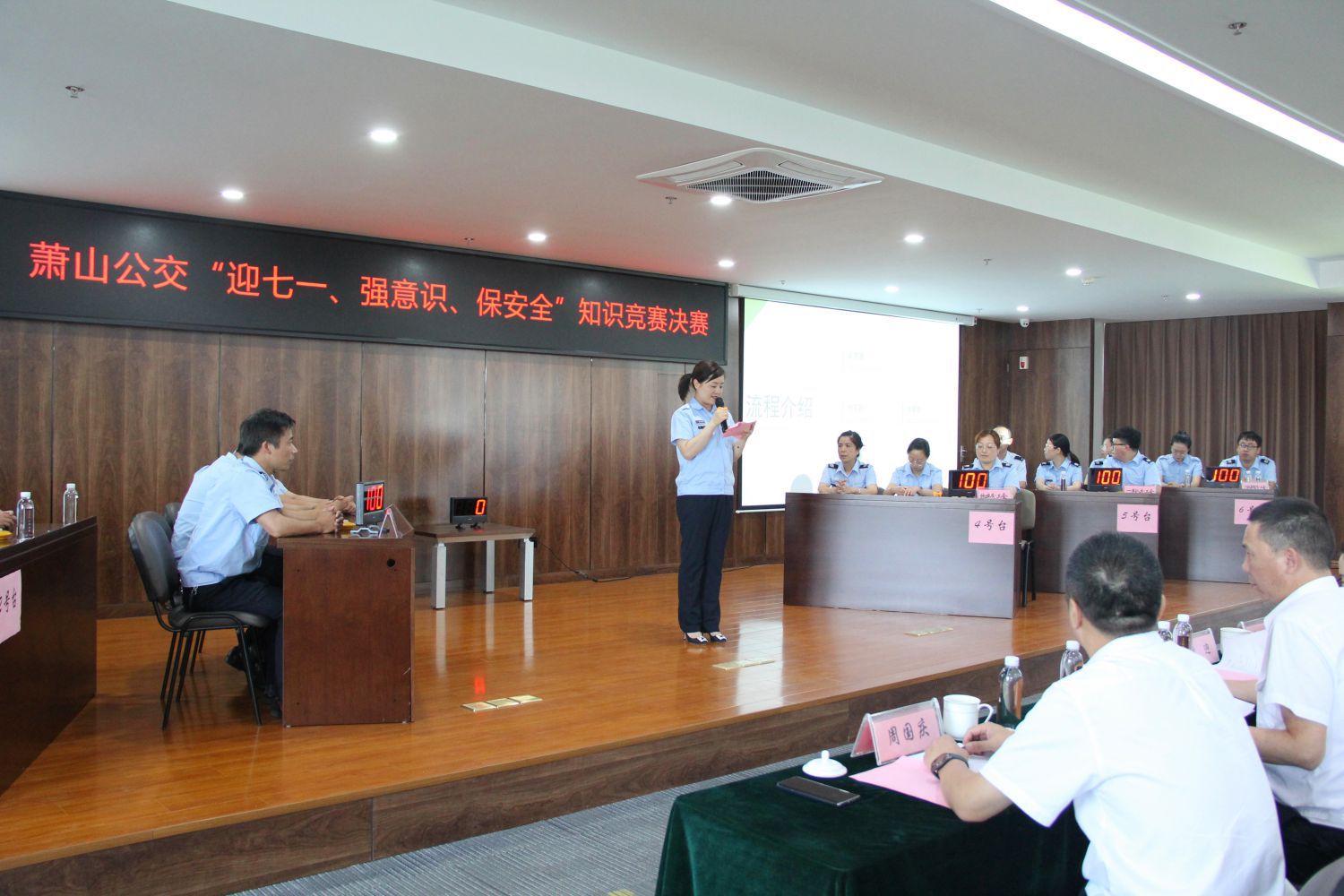 為進一步深化安全生產(chǎn)建設(shè),營造全員學(xué)習(xí)、全員參與的良好生產(chǎn)氛圍,結(jié)合第二十個全國“安全生產(chǎn)月”活動,6月24日,蕭山公交工會積極開展“迎七一、強意識、保安全”知識競賽。蕭山區(qū)交通運輸局領(lǐng)導(dǎo)應(yīng)邀出席,公司班子、各車隊安全管理人員、各分工會職工代表80余人參加觀摩。