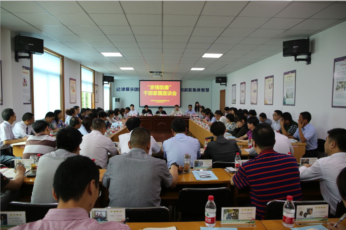 為進(jìn)一步增強(qiáng)黨員干部廉潔紀(jì)律意識(shí)和法制觀念,發(fā)揮家庭在助推廉政建設(shè)中的特殊作用,著力打造清正、廉潔、高效、向上的集團(tuán)干部隊(duì)伍,努力營(yíng)造風(fēng)清氣正、創(chuàng)先爭(zhēng)優(yōu)的良好工作環(huán)境,5月25日下午,集團(tuán)召開“親情助廉”干部家屬座談會(huì)。區(qū)委常委、紀(jì)委書記蔣杭平應(yīng)邀出席;集團(tuán)領(lǐng)導(dǎo)班子成員,中層及以上干部,干部家屬代表共計(jì)65人參加會(huì)議。會(huì)議由集團(tuán)紀(jì)委書記郭維濤主持。