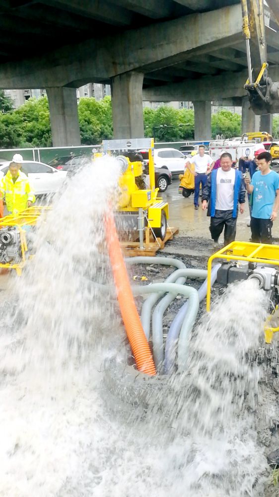 由于排水設(shè)備無(wú)法跟上降雨量,公司當(dāng)即請(qǐng)示集團(tuán)要求應(yīng)急采購(gòu)5臺(tái)(排水量:150立方/小時(shí))、2臺(tái)(排水量:340立方/小時(shí)),7臺(tái)新家伙第一時(shí)間內(nèi)全部到點(diǎn)作業(yè),圓滿完成排水搶險(xiǎn)任務(wù)。截止到目前為止,時(shí)代大道南岸花城恢復(fù)雙車道通行。