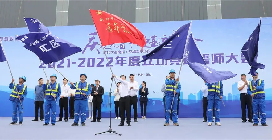 今年5月,時代大道南延(繞城至中環段)工程PPP項目立功競賽誓師大會舉行,全面吹響了時代大道建設攻堅戰號角。通過開展“比隊伍作風、賽施工進度;比施工質量、賽精品工程;比安全生產、賽文明施工;比遵紀守法、賽廉政建設;比科學管理,賽優質服務;比總體籌劃,賽成本控制”為主要內容的“六比六賽”立功競賽活動,大力弘揚工匠精神、勞動精神,努力把時代大道南延項目建設成精品工程、優質工程,切實做好2022年亞運會交通保障工作。