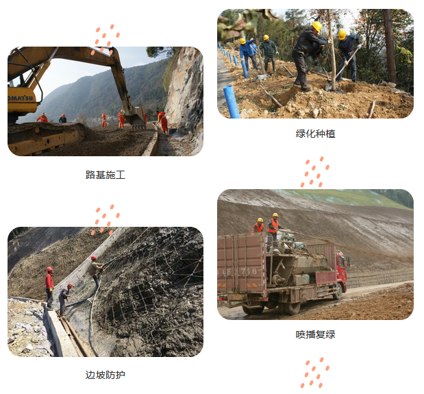 為最大程度減少對山林資源的破壞,采用山體邊坡防護、噴播覆綠等手段對山體進行生態修復,運行建成后的林道已基本恢復原生態。