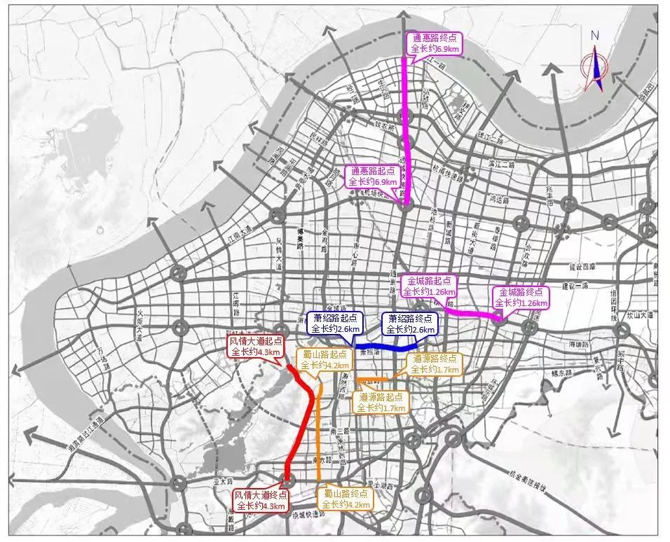 (湘湖隧道-亞太路)長約4.3公里,車道寬約57米。