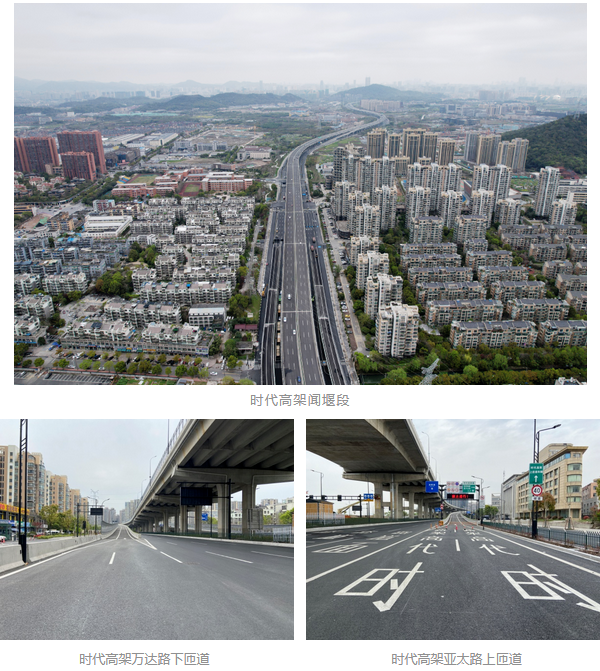今年1月1日,時代高架(區(qū)界-繞城南線)開通試運行,自此義橋匝道上高架從城區(qū)至錢江世紀城、空港新城等地可提速約半小時,從濱江至義橋收費站全程僅需行車十余分鐘。