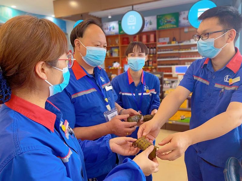 此外,大家互贈香囊,表達自己對同事的問候和關心,小小的香囊寓意滿滿。在這期間,員工還特意將香囊分送給到站加油的顧客們,向他們傳遞節日的平安祝福,分享節日的歡樂和喜慶。