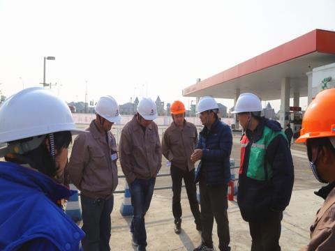 啟動儀式結束后,全體施工人員進行了HSE安全施工作業考試,并于考試合格后在公司總經理張朝杰的帶領下到油罐作業區域進行現場交底工作。
