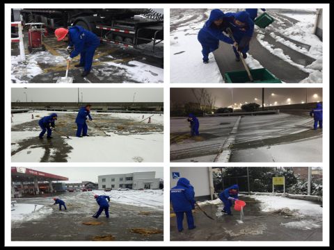 低溫雨雪天氣,交投能源公司及時應對,從人力、物資、供應等多方面作出保障。公司建盈加油站的一線員工們在站長馮芳的帶領下,經過連續兩天的晝夜清掃努力,在站內開辟出一條條安全行駛、行走通道。保證每天運營前,清除油站出入口冰雪,鋪設防滑材料,并在運營時段隨時清掃,防止積雪結冰,確保顧客們安全出行。