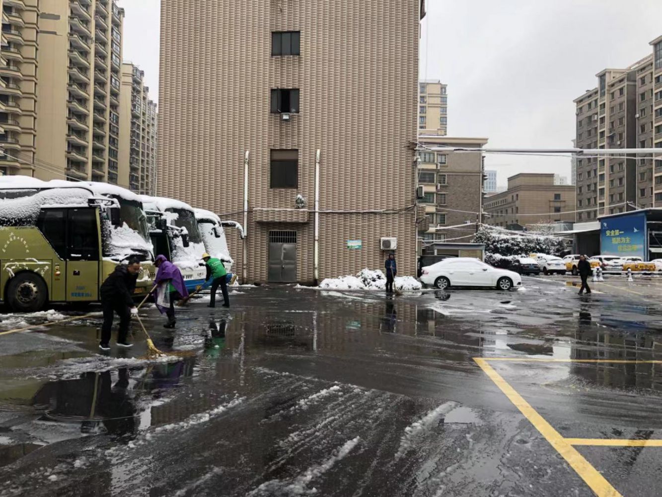 交投出租車公司對場站及周圍路面進行積雪清除工作