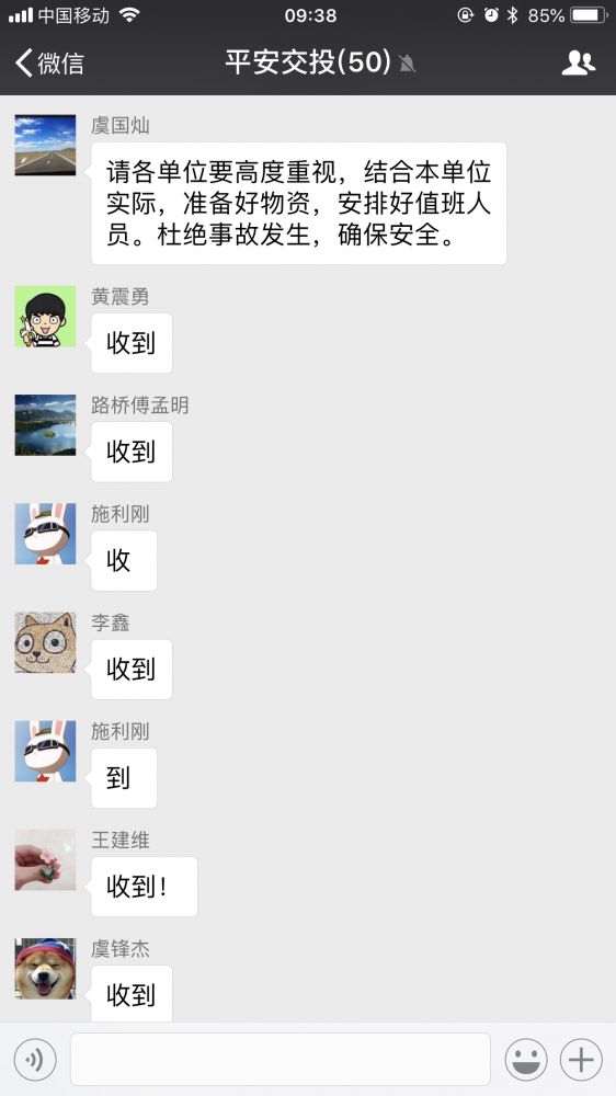 除通過紙質、電話方式布置工作外,集團領導通過“平安交投”微信號及時傳達上級要求,布置具體工作
