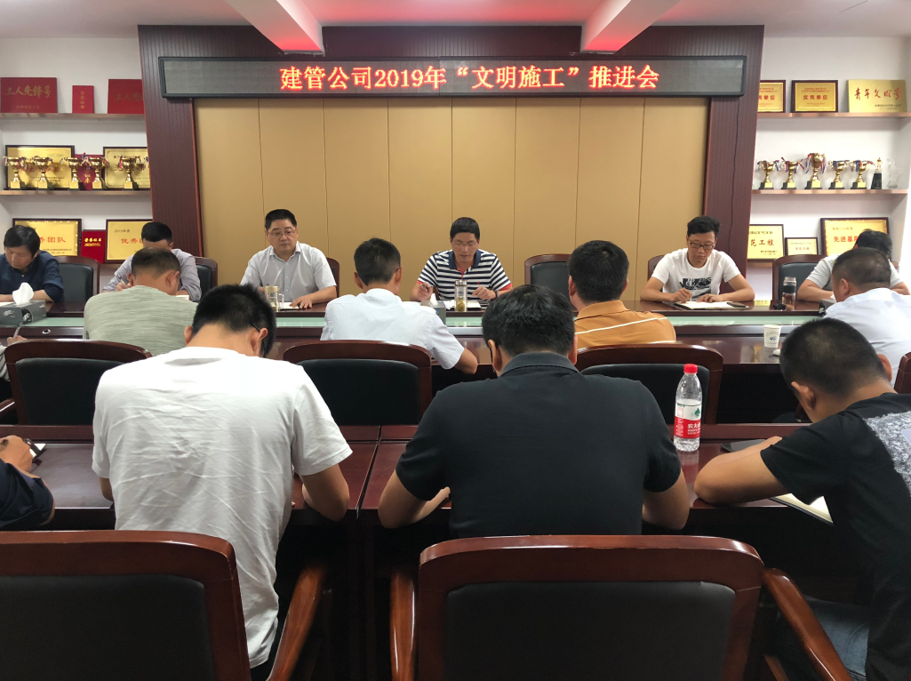 5月22日下午,杭州蕭山交通建設管理有限公司在201會議室組織召開了2019年“文明施工”推進會。建管公司常務副總徐全民、副總經理龔鐵峰、洪吾明,以及安全、工程部經理出席。同時還邀請了紅十五線改建工程、時代大道改建工程、03省道東復線高架南延工程、03省道蕭山義橋至樓塔段改建工程、杭州港蕭山港區義橋作業區(第二部分)、浦陽江治理工程等項目施工、監理單位負責人參加此次會議。