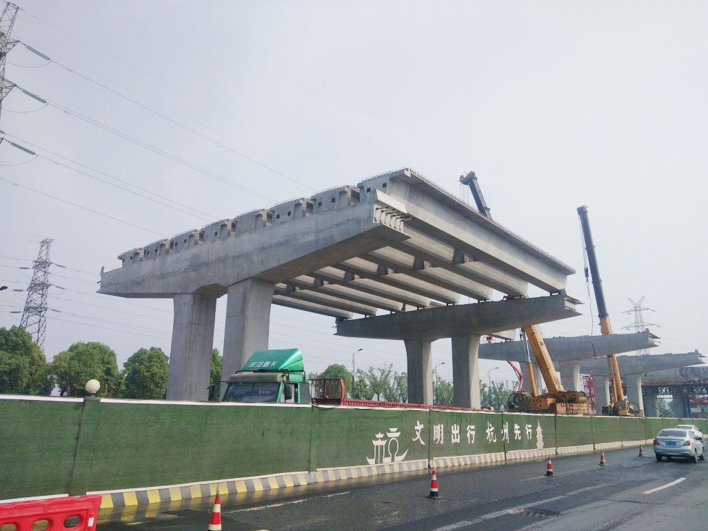 時代大道改建工程全長6595m,共有預制梁板1691片,首跨成功架設的預制梁板長25米,本次計劃連續架設梁板3跨,每跨8片,共計24片,計劃于6月7號左右完成本次24片梁板架設,并逐步開始連續架設。