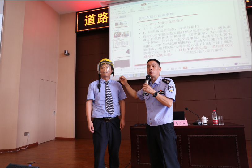 陶警官就當前道路交通環境、交通法律法規、事故應急處置以及如何預防交通事故發生等方面進行講述,深入分析違反交通規則、違背交通道德帶來的種種危害。同時,結合生活中的駕駛車輛及電動自行車等交通違規案例,對各類事故案例進行分析,讓參訓人員直觀的看到交通事故帶給身邊的人、社會的影響,更直接、深刻的提醒員工時刻注意交通安全。