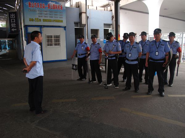 6月12日上午,長(zhǎng)運(yùn)公司安保對(duì)講機(jī)中傳來(lái)了警務(wù)室負(fù)責(zé)人報(bào)告下客處有一名暴徒持刀砍傷乘客的警情。警情發(fā)生后警務(wù)室人員與公司保安人員迅速趕往事發(fā)地使用反恐警具與暴徒進(jìn)行對(duì)峙,同時(shí)立即用對(duì)講機(jī)向保安隊(duì)長(zhǎng)、物業(yè)部匯報(bào),并撥打110,要求立即增援并疏散群眾。公司立即啟動(dòng)反恐應(yīng)急預(yù)案,組織人員三分鐘內(nèi)趕往現(xiàn)場(chǎng)將暴徒制服。